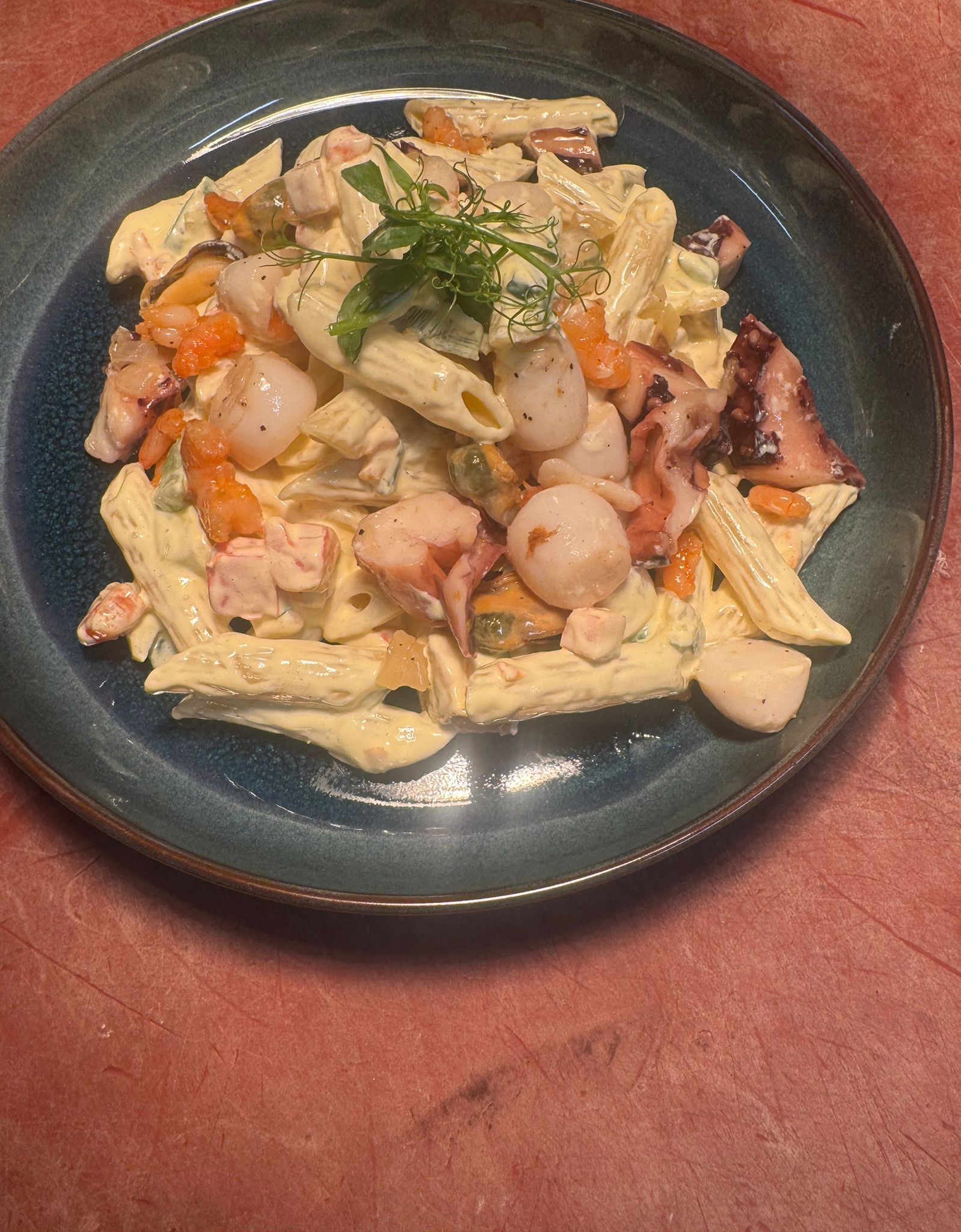 | Ingrediënten | Pasta (Gluten), Zeevruchten (Schaal/schelpdieren), Paprika, wortel, ui, knoflook, courgette, Hollandaise saus, Ei, Melk (Lactose) |